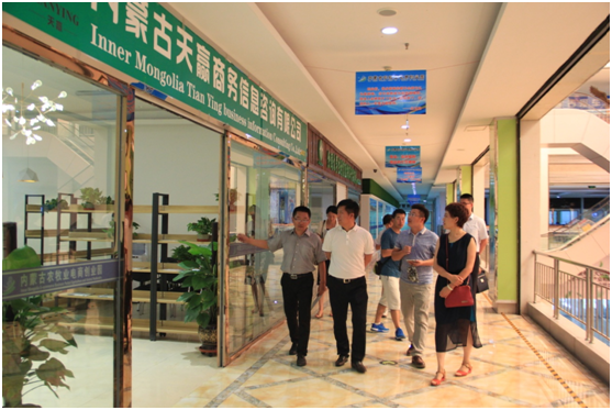 特種產(chǎn)業(yè)分會(huì)會(huì)長(zhǎng)、內(nèi)蒙古宇航人高技術(shù)產(chǎn)業(yè)有限責(zé)任公司總經(jīng)理王尚義與協(xié)會(huì)常務(wù)秘書長(zhǎng)劉俊青帶領(lǐng)會(huì)與企業(yè)代表參觀農(nóng)牧業(yè)電商創(chuàng)業(yè)園