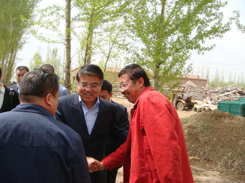 自治區(qū)政府何副秘書長(中)、土左旗黨委王書記(左二)在基地指導(dǎo)工作:
