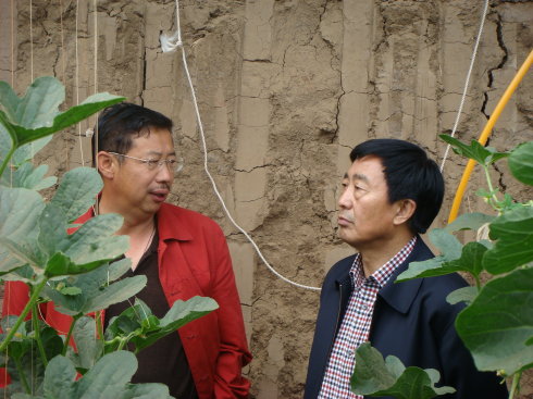 高副市長和基地負(fù)責(zé)人在越冬暖棚內(nèi)