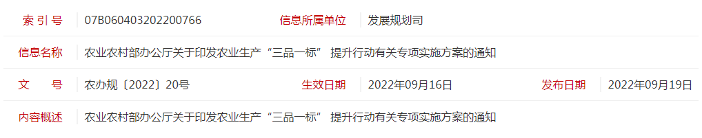農(nóng)業(yè)農(nóng)村部辦公廳關(guān)于印發(fā)農(nóng)業(yè)生產(chǎn)“三品一標(biāo)” 提升行動有關(guān)專項實施方案的通